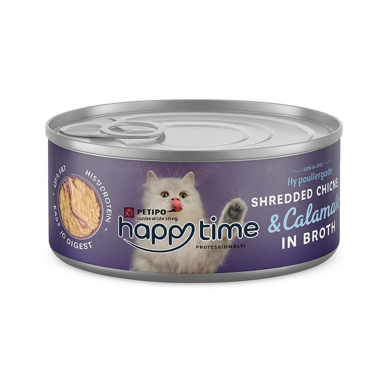 کنسرو هپی تایم نچرال با طعم مرغ و کالاماری (ماهی مرکب)، یک وعده غذایی خاص، مقوی و فوقالعاده خوشخوراک برای گربههای بالغ است. استفاده از گوشت مرغ تازه و کالاماری دریایی، این محصول را به منبعی غنی از پروتئینهای حیوانی، اسیدهای چرب امگا و مواد معدنی کمیاب تبدیل کرده است.