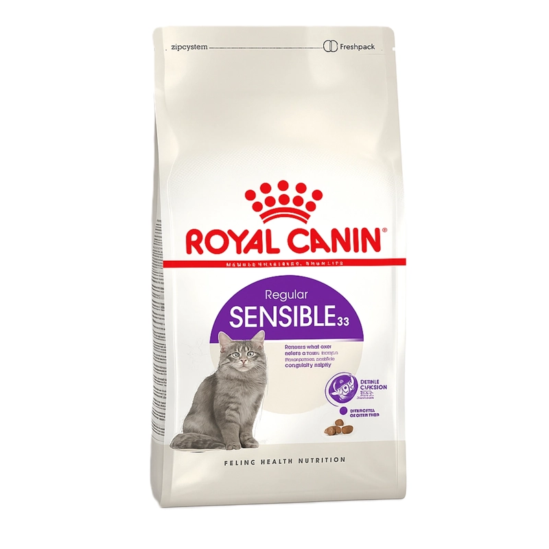 غذای خشک رویال کنین مدل Sensible مخصوص گربه‌های بالغ با دستگاه گوارش حساس طراحی شده است. اگر گربه‌ات اسهال، نفخ، یا دفع غیرعادی دارد و به هر غذایی واکنش نشان می‌دهد، این مدل گزینه بسیار خوبی است.